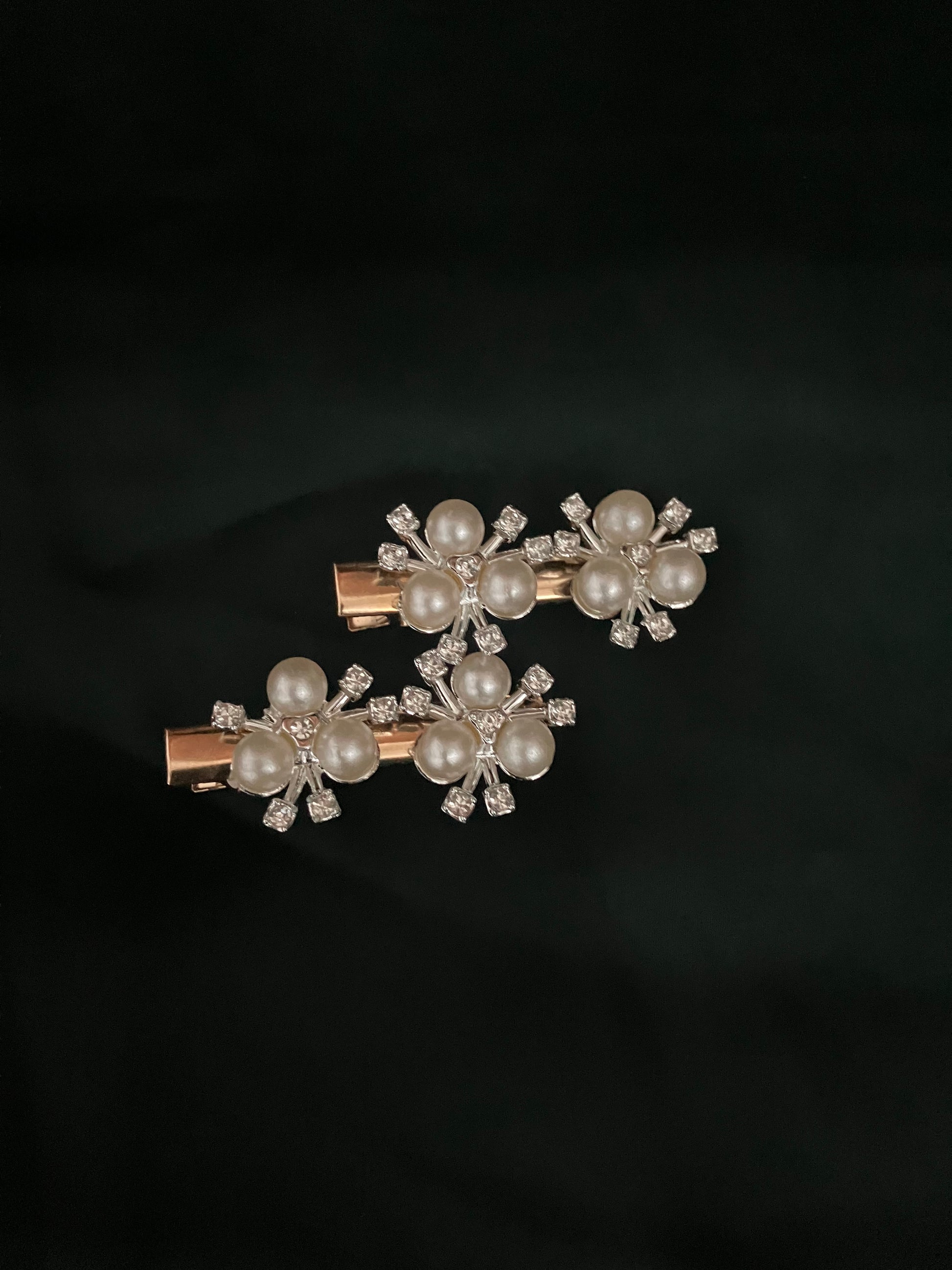 The Pearl Clips bring delicate elegance to your hairstyle with their flower-inspired design of luminous pearls and sparkling crystals. Whether for a wedding, party, or a touch of everyday charm, these clips add a graceful and feminine finish to any look.