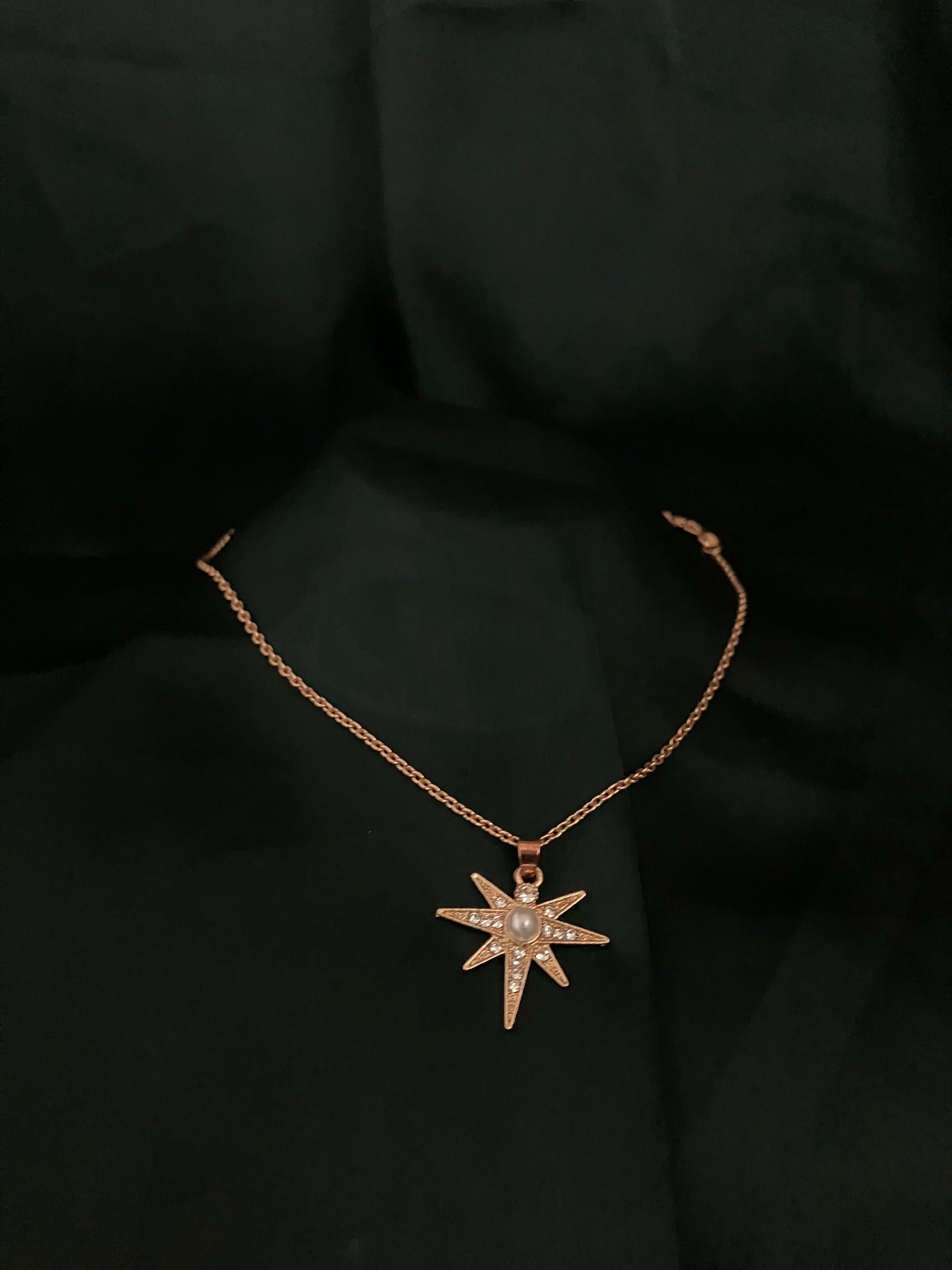 Shine bright with the Pearl Star Necklace, featuring a radiant star-shaped pendant adorned with sparkling crystals and a luminous pearl at its center this necklace is a statement piece that adds elegance and charm to any outfit. Perfect for adding a touch of celestial beauty to your collection.