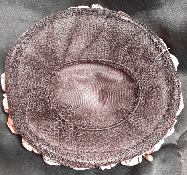Round dome hair accessory densely packed with dusty-rose mini roses, rose-gold buds and pollen clusters. Mounted on a breathable mesh cap that sits over your bun for a rich bridal/festive look.